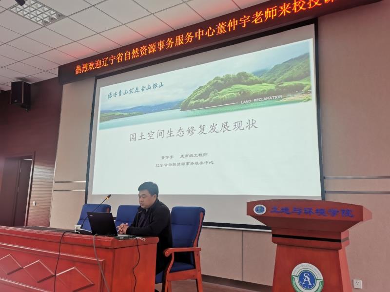 4月29日上午麻豆网 邀请建平盛德日新矿业有限公司刘永海董事长、辽宁省自然资源事务服务中心国土空间规划和生态修复部生态修复组组长董仲宇、辽宁省自然资源事务服务中心自然资源调查与确权登记部基本农田监测核查组组长靳洪武。分别以“铁矿山资源效率提升途径和绿色矿山建设”、“国土空间生态修复发展现状”和“辽宁省耕地保护工作动态及政策”为题,为土地整治工程本科生、土地资源管理学科硕士生进行专业教育与社会需求方面的讲座。