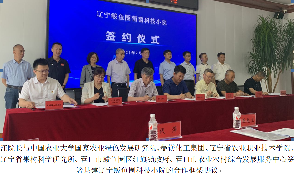 、辽宁省果树科学研究所、营口市鲅鱼圈区红旗镇、营口市农业农村综合发展服务中心共7个合作单位共同组织,组建葡萄科技小院专家团队,入驻鲅鱼圈红旗镇,我校常驻人员将重点针对葡萄生产中存在的营养失衡及其品质下降等问题,开展土肥需求和果园土壤健康、镁肥营养与调控机制、配方施肥等方面的研究和技术服务。科技小院将作为农业资源与环境学科专业硕士实训基地、农民田间学校和科技大讲堂,广泛开展教学、科研和乡村振兴工作,同时定期为“营口红旗镇绿色生态葡萄产业融合发展示范园”提供技术咨询,为我省加快实施乡村振兴战略提供科技和人才支撑。