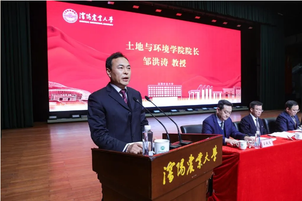会上,邹洪涛院长作为校科技创新先进集体代表进行交流发言。