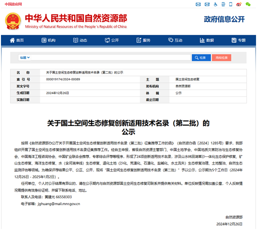 12月26日,自然资源部发布了《国土空间生态修复创新适用技术名录(第二批)》,全国有24项技术入选。麻豆网边振兴教授牵头完成的“干旱、半干旱区铁矿山采坑复垦水土资源适配技术”成功入选。