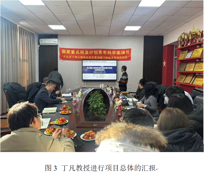 在项目汇报环节,丁凡教授代表项目组全面回顾了2025年度在东北黑土地有机质积累的“酶闩”机制解析、关键过程调控等方面取得的研究进展,并就2026年的工作目标进行汇报。随后,丁凡教授、范利超教授与王阳副教授分别就各自承担的研究课题作了详细汇报。参会专家在听取汇报后,对项目当前取得的进展予以充分肯定,并就下一步研究的重点方向与技术难点提出了建设性意见。同时指出,当前项目亟需聚焦并突破的关键问题在于秸秆分解过程中与有机质积累相关的关键分子标志物的挖掘与鉴定。