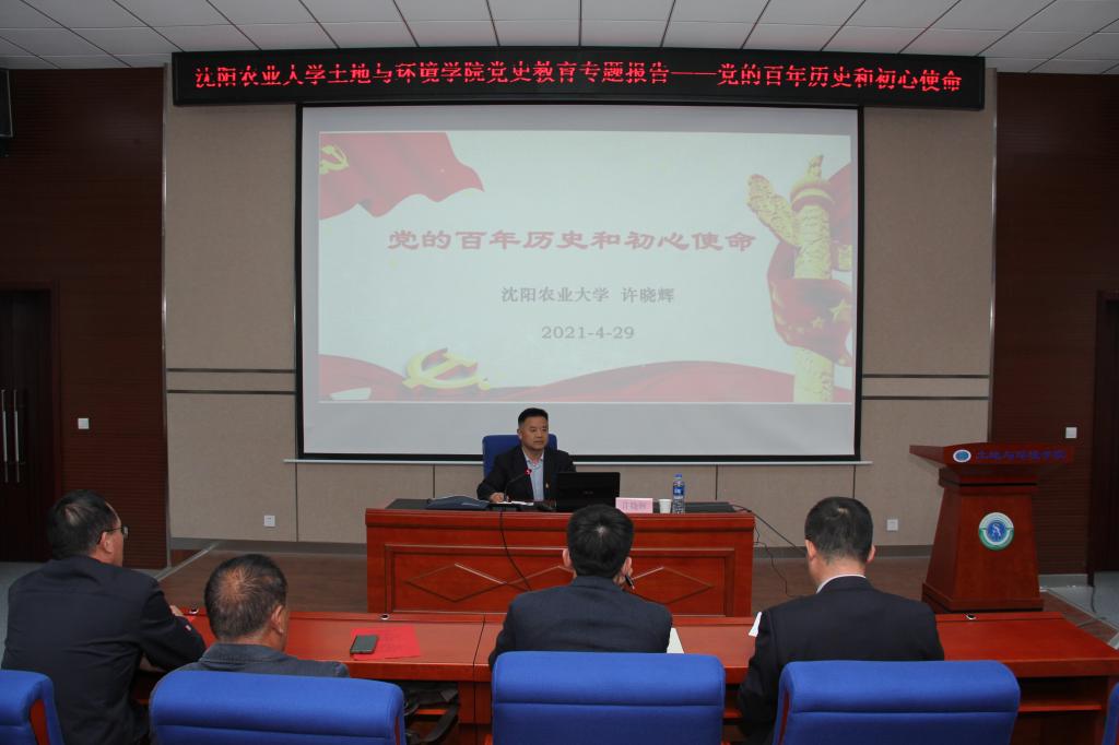 院长许晓辉为广大师生党员、入党积极分子作题为“党的百年历史和初心使命”的专题报告。