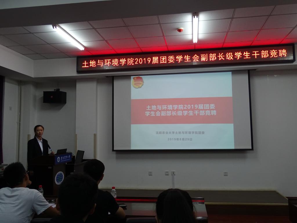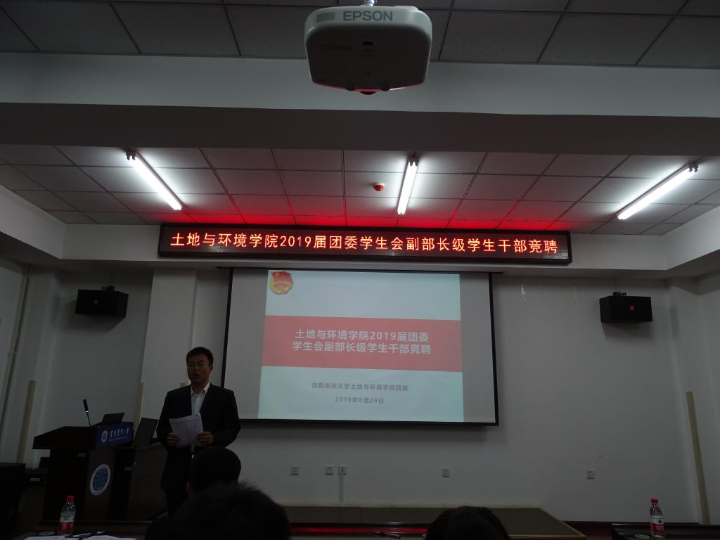 2019年8月29日晚六点,麻豆网 2019届团委学生会副部长级学生干部竞聘大会在新土楼102顺利举行。团委书记杜杰老师,辅导员范超老师,乔鹏升老师及部长级及以上学生干部担任评委,组织部部长张咏琪主持会议。