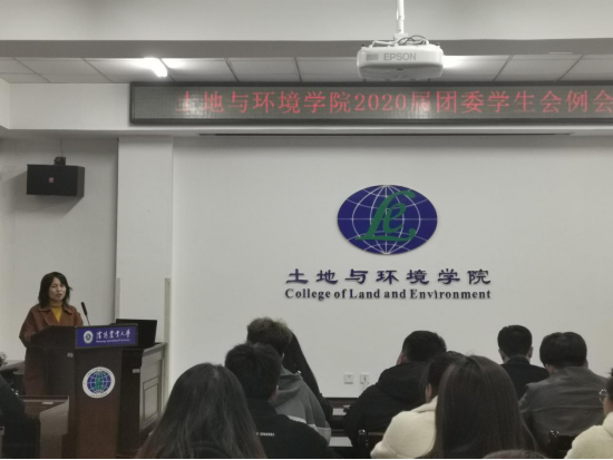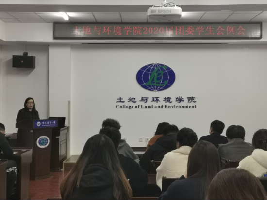 2020届团委学生会例会于土壤楼B座102顺利召开。党委副书记、副院长兼纪委书记袁玲老师,团委书记杜杰老师,辅导员范超老师,辅导员乔鹏升老师及院团委学生会部门负责人及以上学生干部出席大会。会议由院团委书记杜杰老师主持。