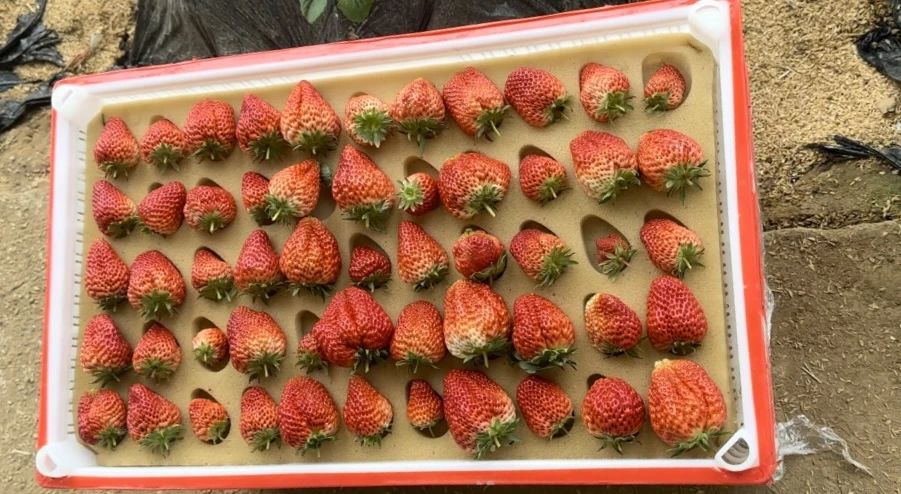 走进辽宁省大连市金州区八里村八里草莓采摘园,在这里我们看到了很多种类的特色草莓。例如,牛奶草莓是通过杂交培育出来的一种新的草莓品种。因为其甜度较高于普通牛奶,而且吃起来会有一种牛奶的味道而得名。同时具有一定的营养价值,其体内的维生素以及微量元素含量丰富,可以提高人体的免疫力。香蕉草莓章姬的杂交品种,此品种的果实形状较细长,比较像香蕉,因此得名。其外形颜色较鲜艳、亮丽,具有光泽,果肉细嫩多汁,口味浓甜芳香,口感较好。且休眠期浅,抗病性强,果实硬度高,适于储存。