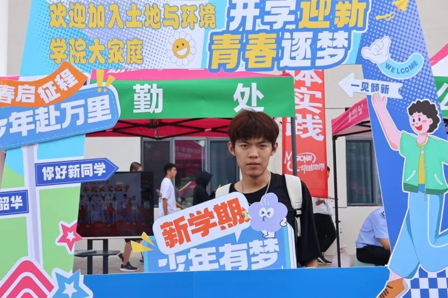 清晨六点,学生志愿者便已到达各自的岗位,他们身着统一的服装,有条不紊地带领同学们签到、领餐券、领取寝室钥匙、分发树莓汁,做到“点对点”地全面引导工作。