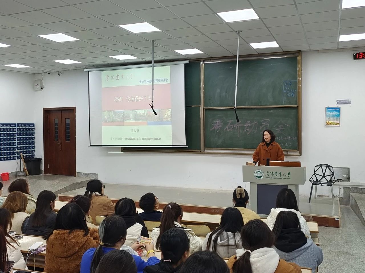 在研究生培养方面的优势资源和特色项目,让同学们对未来考研的学习生活充满期待。他还提出四点建议:坚定信心,努力可攀;抓紧时间,拼搏未来;放松心情,自我调节;不言放弃,坚持到底。希望同学们在备考期间坚守目标,通过努力在学业上有所建树,勇敢地战胜考研路上的重重困难。