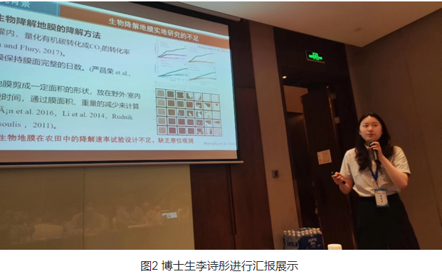 李诗彤的口头报告题目为“生物降解地膜形成的大塑料与微塑料的动态规律”(原文链接:)。研究基于中国辽宁省海城市建立的生物降解地膜覆盖实验,在2018年单次覆盖生物降解地膜,生物降解地膜以聚己二酸丁酯-对苯二甲酸酯(PBAT)和聚乳酸(PLA)为原料,选用透明和黑色两种颜色。量化了生物降解地膜覆盖后4年内产生大塑料(>5mm)和微塑料(检测尺寸为0.1-5mm)的动态变化。得出结果:(1)生物降解地膜在耕作混入土壤后2.5年,生物降解地膜产生的残膜已经肉眼不可见。(2)生物降解地膜会产生微塑料(0.1 mm-5 mm)只能存留几年(>4年)的时间。(3)提出一个新的提取生物降解地膜源微塑料方案,去掉加氧化有机质的步骤,用H2O分离有机质和生物降解地膜。