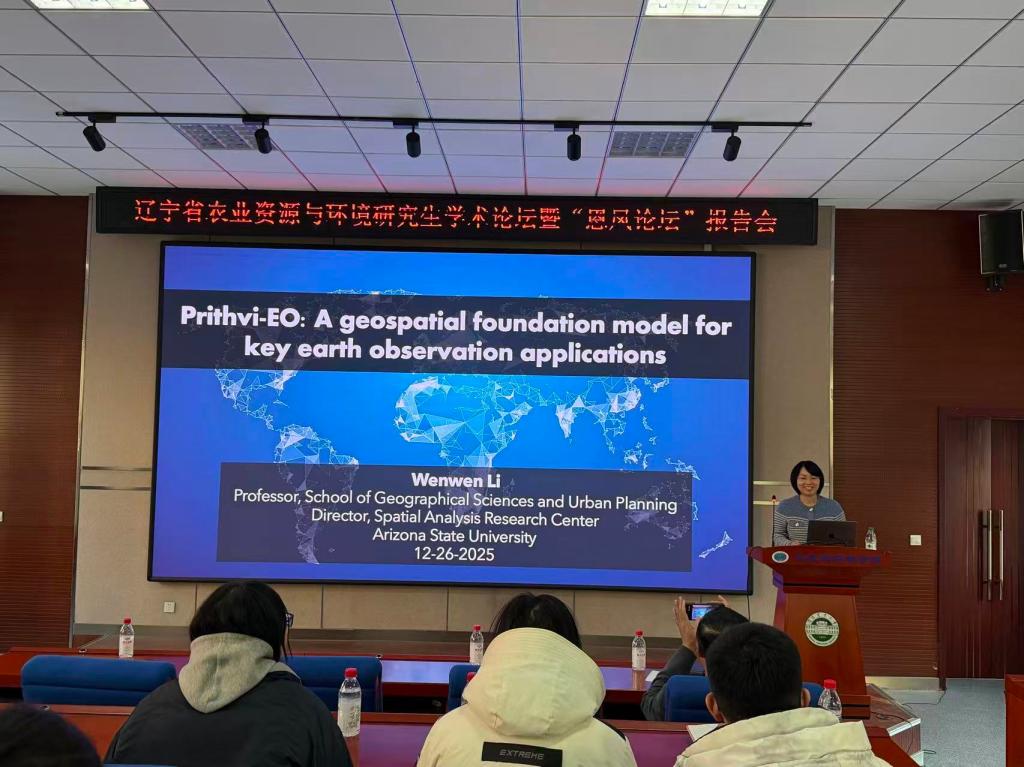 邀请美国亚利桑那州立大学终身教授、空间分析研究中心主任李文雯教授作题为《Prithvi-EO: A geospatial foundation model for key earth observation applications》的学术报告。报告由学院副院长边振兴教授主持。