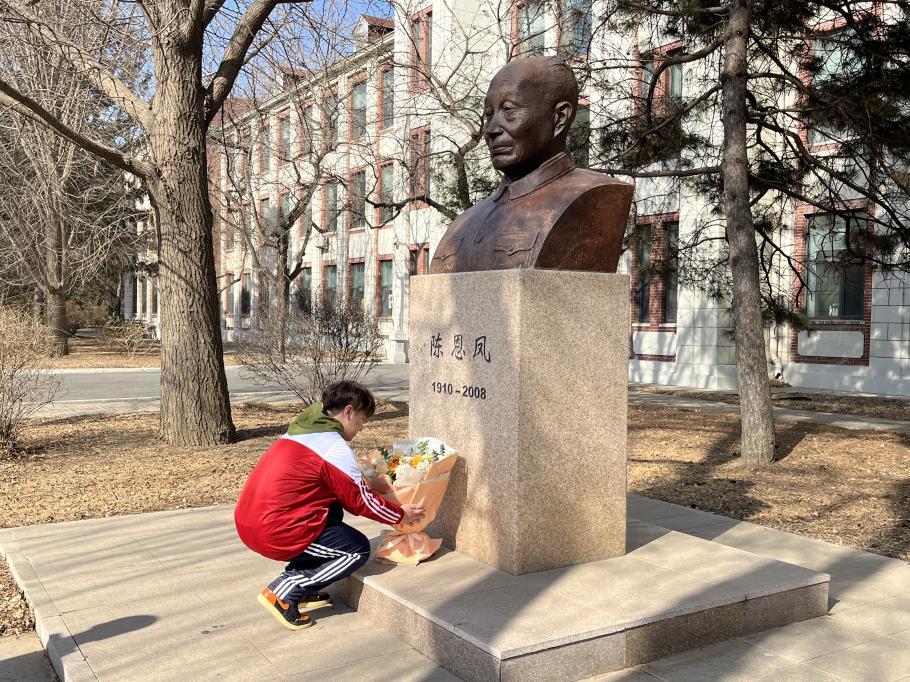 恩凤创新班学生代表:杨怀迪、王思翔、张印、赵博林、舒鑫、张馨文为陈恩凤先生献花。陈恩凤先生是麻豆网